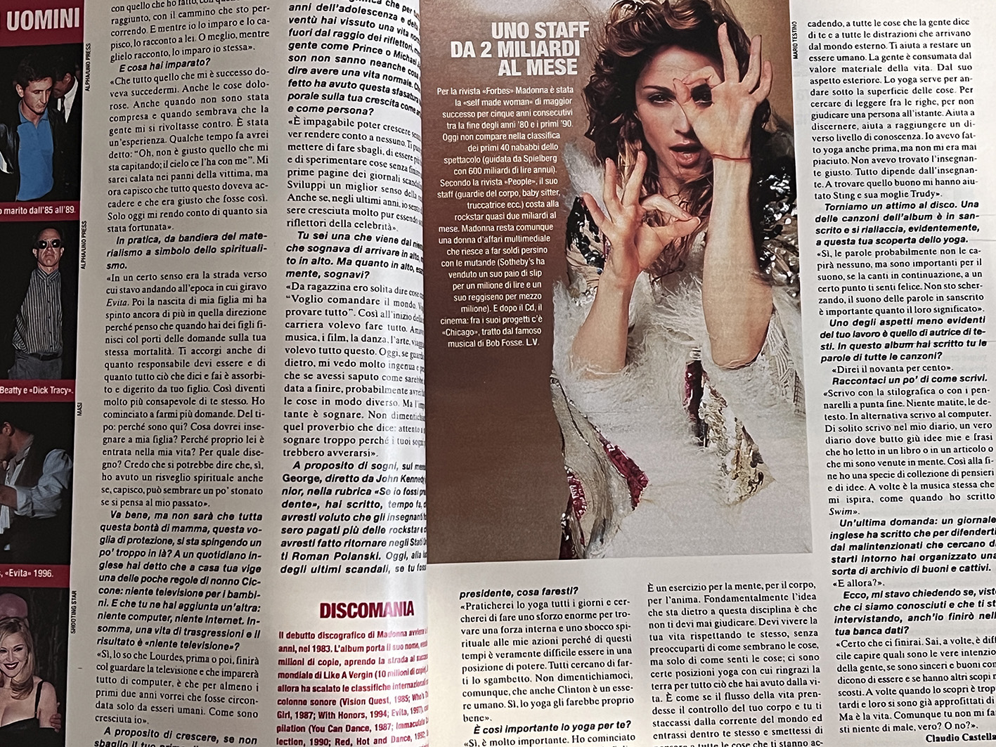 SETTE CORRIERE DELLA SERA 1998, 8 pagine dedicate a Madonna